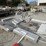 残念ですが、こうした天候では石の据付けに関してはほぼ施工できなくなります。石が濡れて云々とかいうレベルでなく、間違いなく滑って破損や怪我の原因になります。