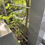 この状態で墓誌だけ据えるわけにもいかないので、まずは草むしりから作業開始です。と言っても、地下茎の植物なので、どうしても根こそぎとはいきませんね…。