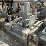 傾斜地に建つお墓は敷地サイズもほぼ同じ。作業的にはやりやすい部分もあります。