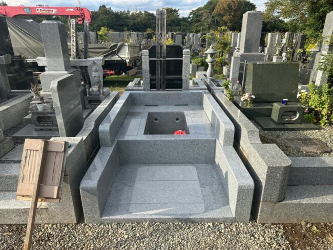 緑ヶ丘霊園4㎡墓所工事③|納骨室の据え付けと外柵の仕上げ