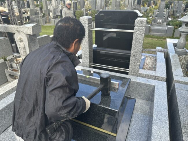 見えない部分の補強金具、接着剤の使い分け、雨天時の判断――すべては品質の高いお墓を