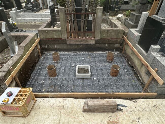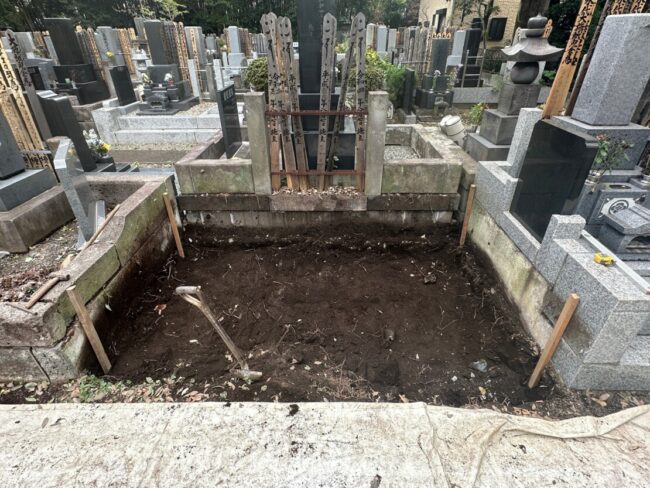 狛江市の寺院墓地で外柵リフォーム②|基礎づくり