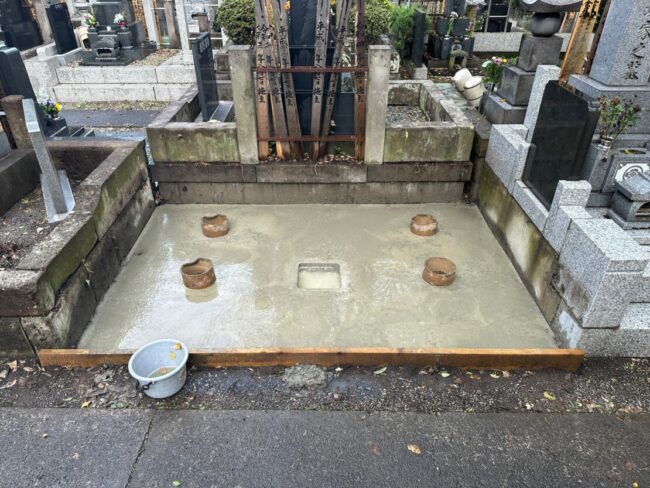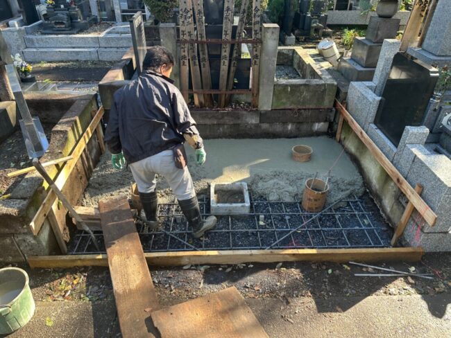 狛江市の寺院墓地で外柵リフォーム③|コンクリート打設