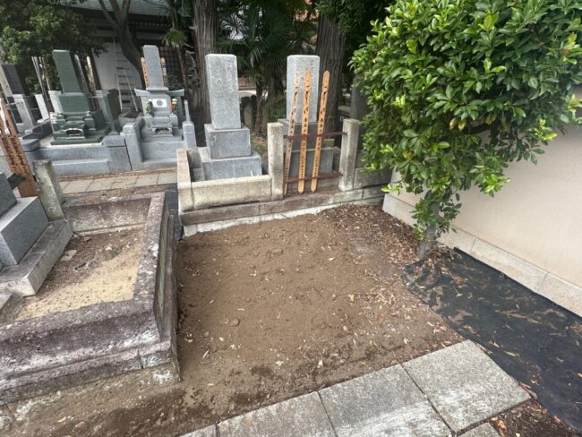 寺院墓地や霊園で、隣や近くの区画が更地になっている。
