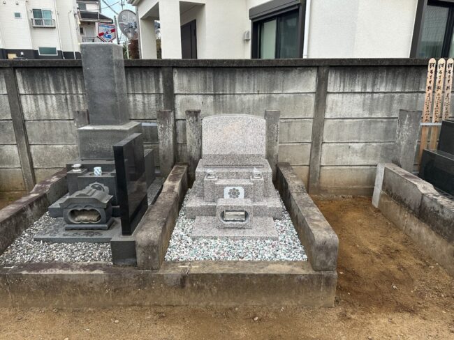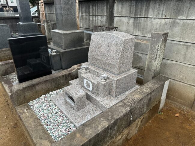 川崎市多摩区の寺院墓地で、明るい色合いの洋型石塔を建立しました。