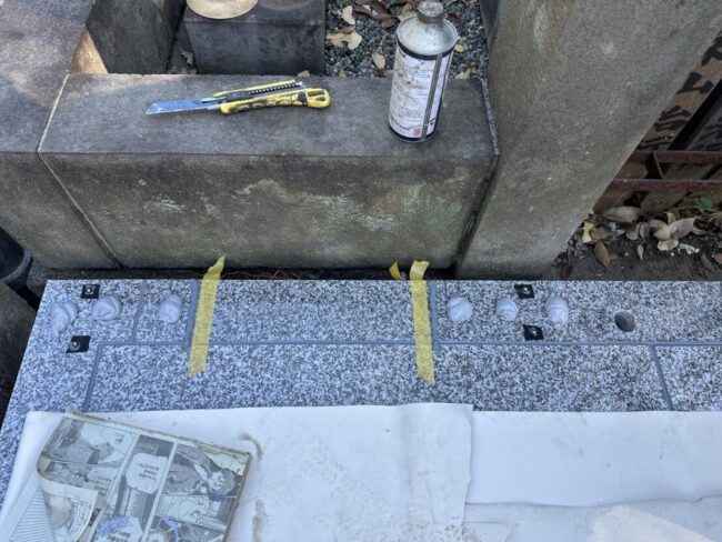 羽目石や塔婆立ての据え付けは、弾性接着剤