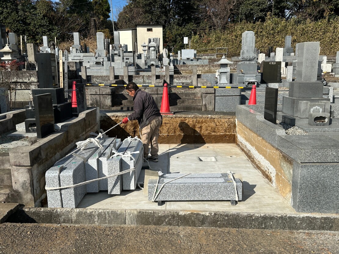 多摩区の寺院墓地での墓所工事が