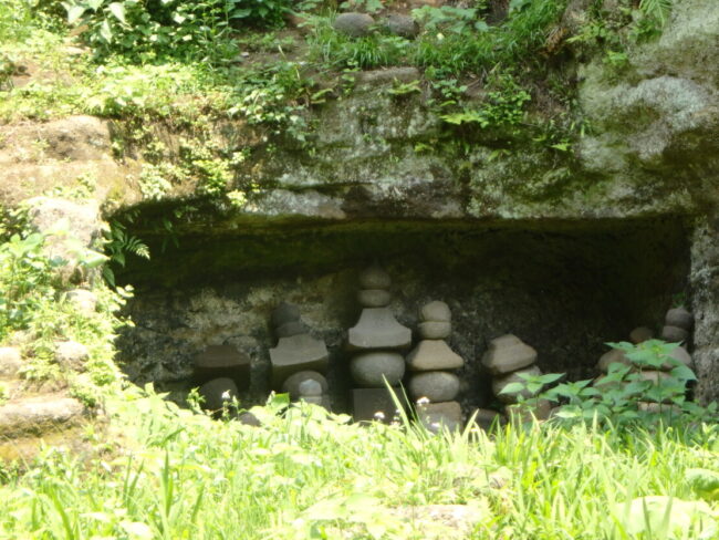 やぐらの内部に石塔を据えて納骨供養を行う施設