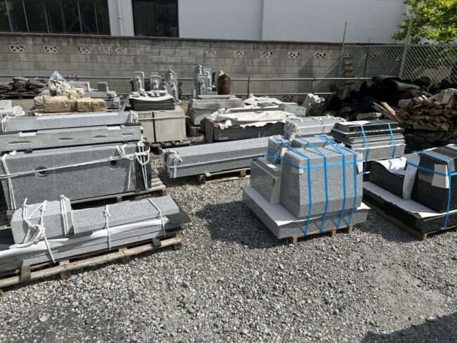 すでに開梱、寸法確認・アンカー穴加工を終え出番を待つ石材も。