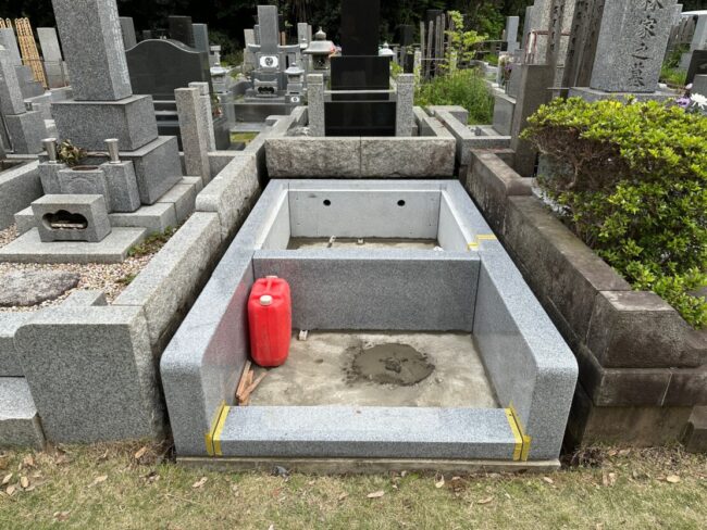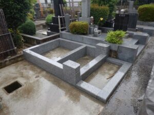 川崎市営緑ヶ丘霊園4㎡墓所。外柵の据え付けを進めました