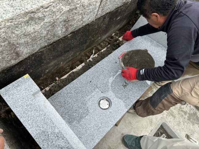 4㎡の墓所の中に、石材も道具も人も入ります。